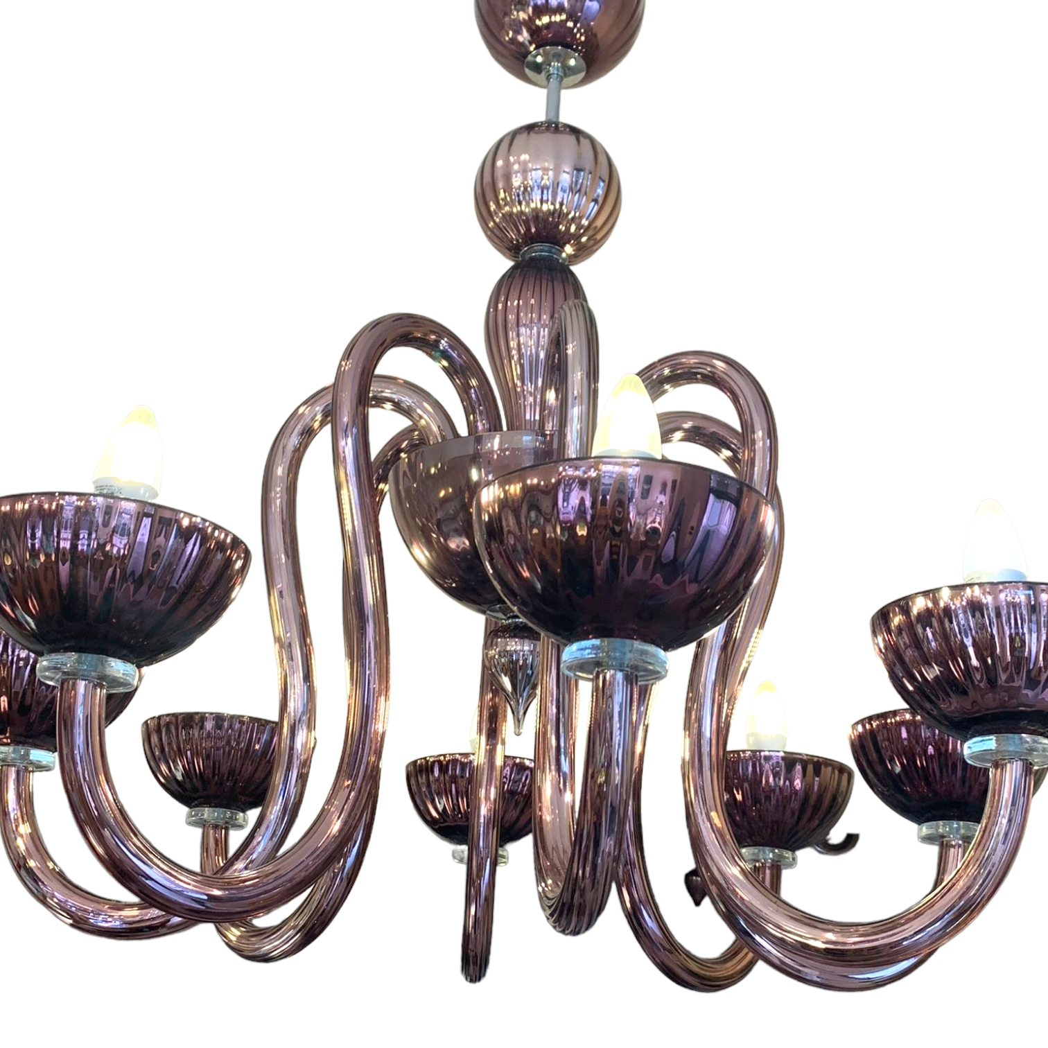 Lilac mirrored glass chandelier with 8 lights by Cenedese.