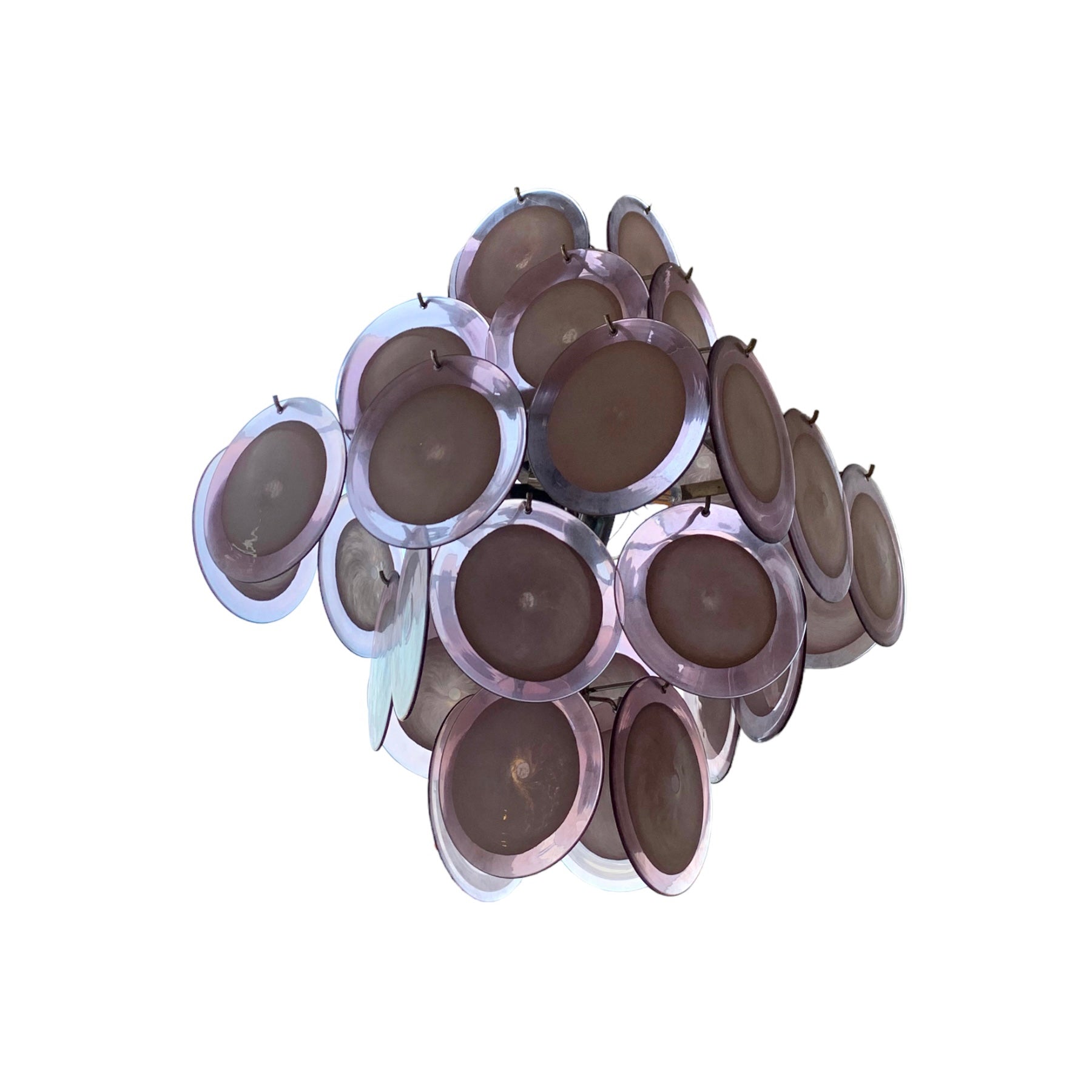 Vintage style chandelier, with iron structure and single cup consisting of 6 light points. Decorated with blown Murano glass discs. The predominant color is pink