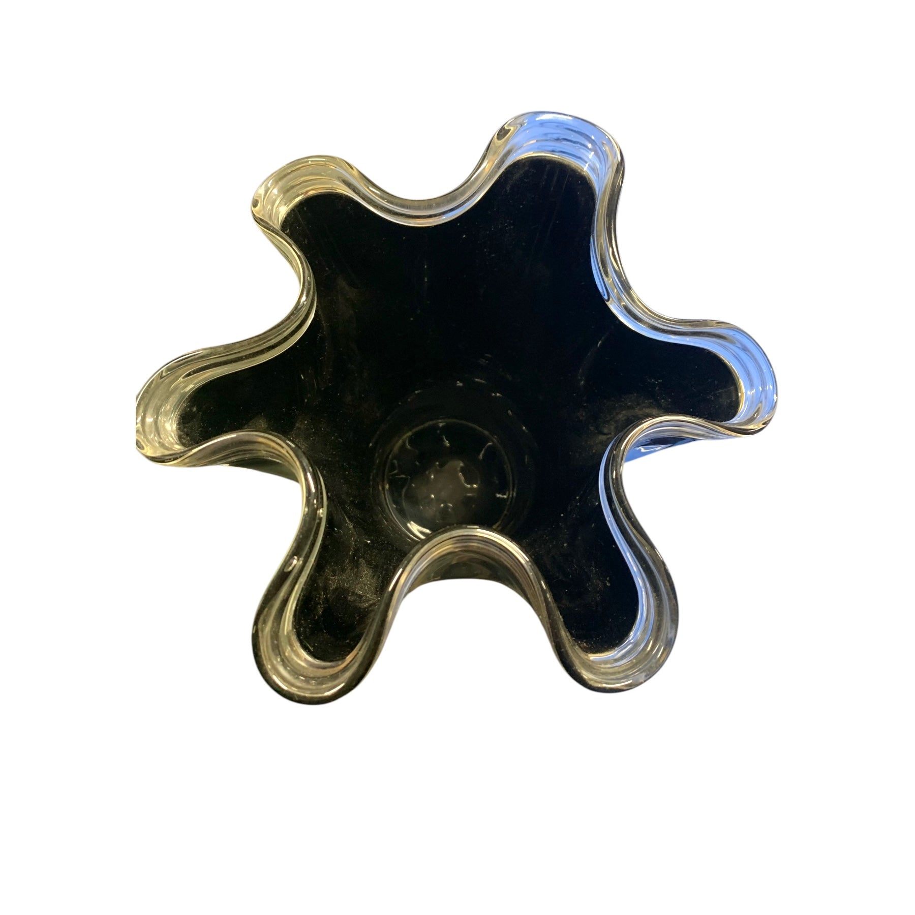 Vaso a fazzoletto anni ‘40 di Flavio Poli Seguso in vetro nero con bordo in cristallo.