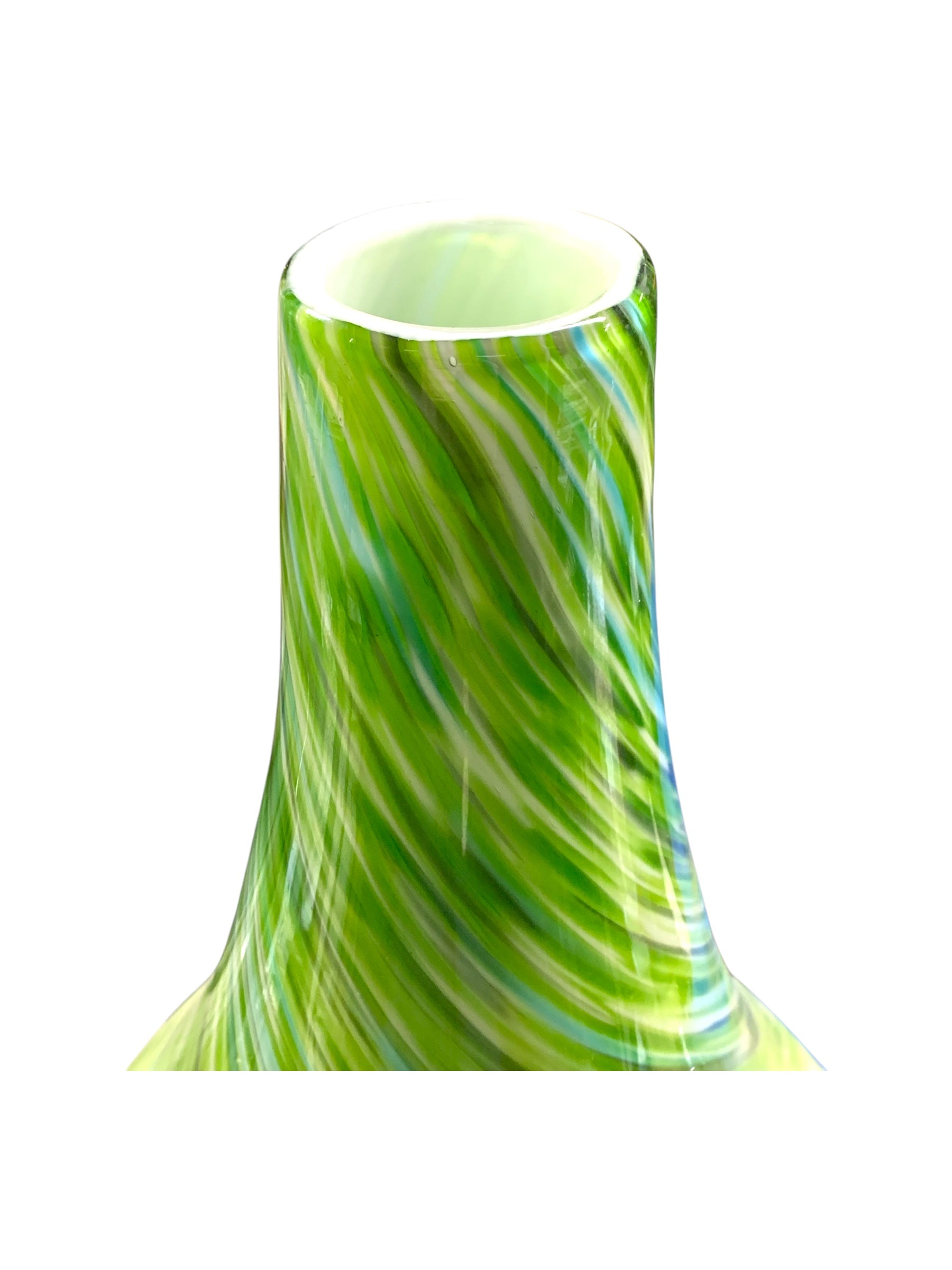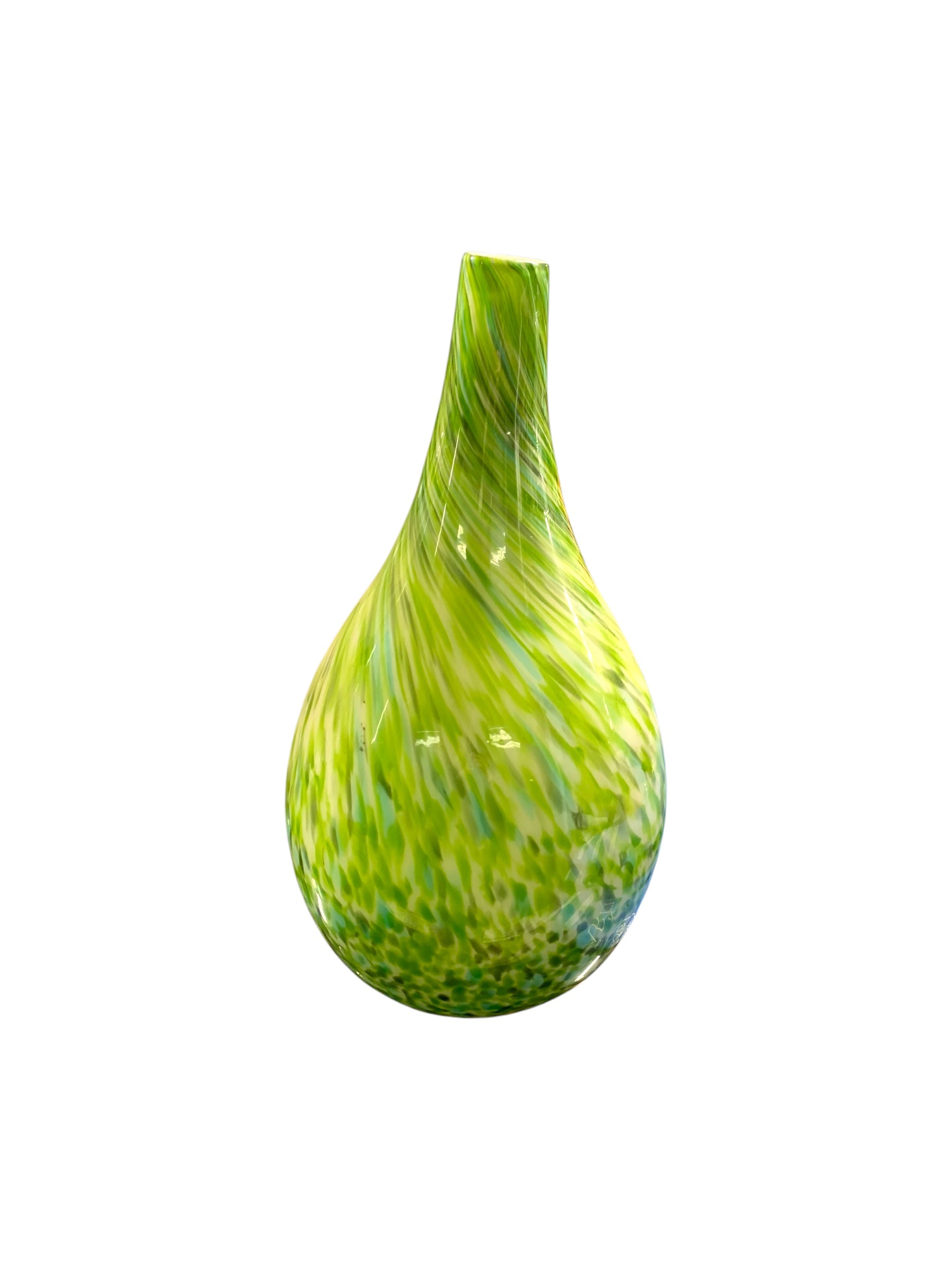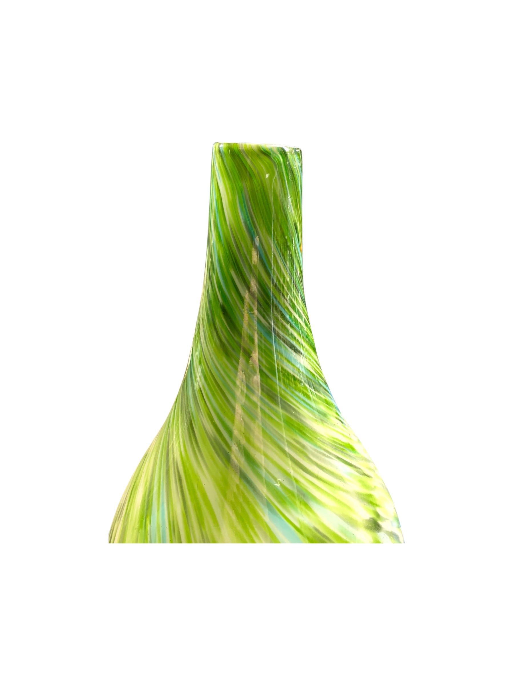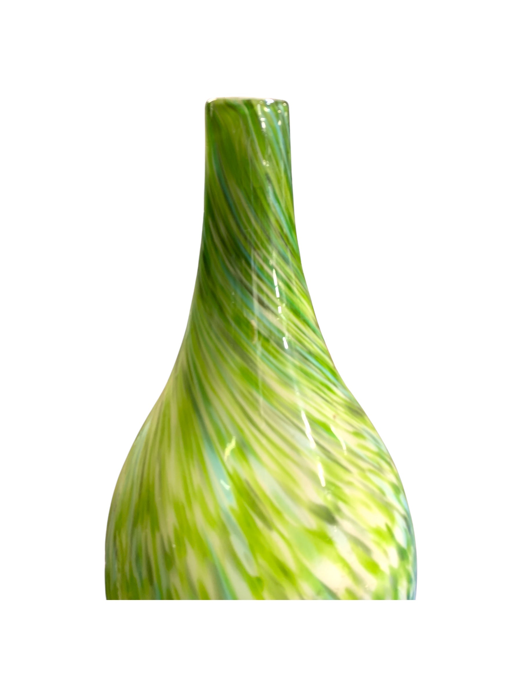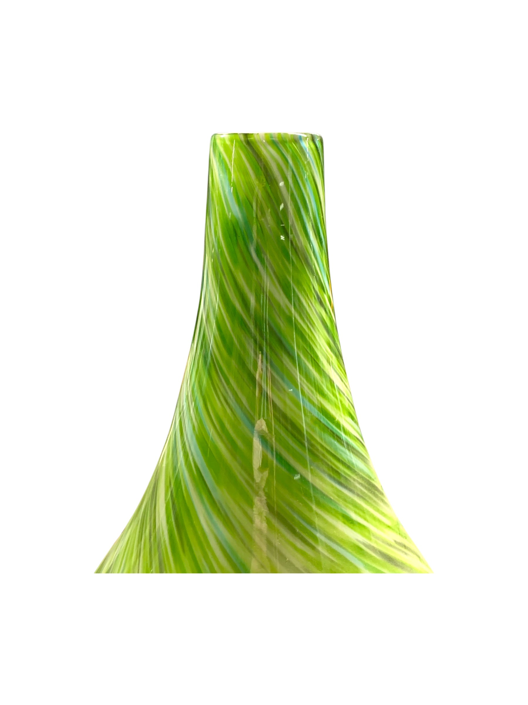 Greene & Greene è un vaso scultura dell’artista Jeremiah Jacob, è in vetro soffiato ed incamiciato il motivo a vortice su tutta la superficie crea quasi un effetto ipnotico all’osservatore, il verde nelle sue diverse tonalità e gradazioni è un tratto distintivo di questo artista e reca profondità alla superficie del vaso.